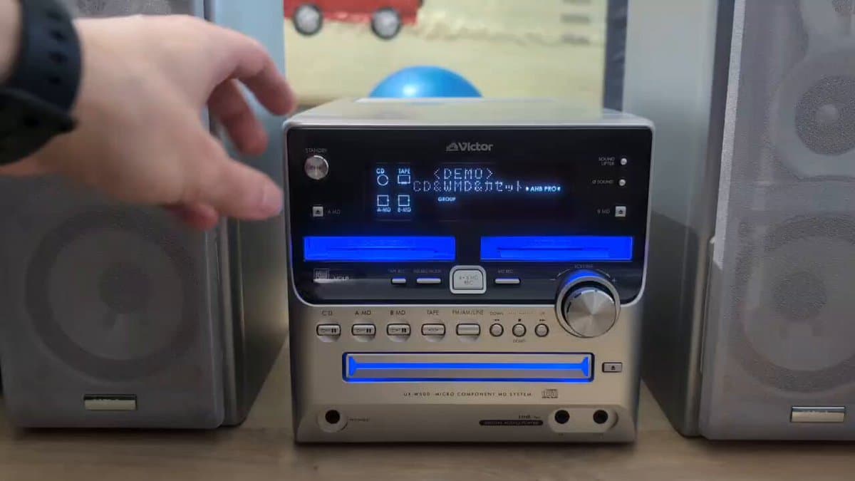 Look at this beauty! Fresh off Japan, a Victor stereo with cassette, MiniDisc and CD player. Follow the thread for a tour of this lovely piece of engineering.🧵#hifi #audio #cassette #MiniDisc #CD #JVC #Victor